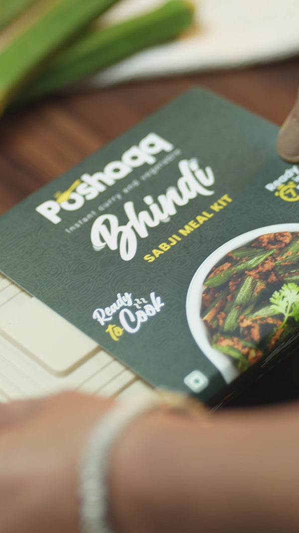 Poshaqq | Masala Bhindi Ready Mix | 100% Natural Masla Spice & Okra | Sabji Mealkit | Instant ready to cook Veg Bhaji | Ready to Eat or Cook | 25 grams Bhindi(Okra) and 60 grams Masala (Pack of 1) | After Cooking 300GMS | 2 servings
