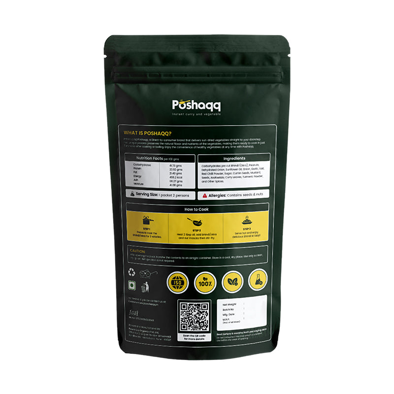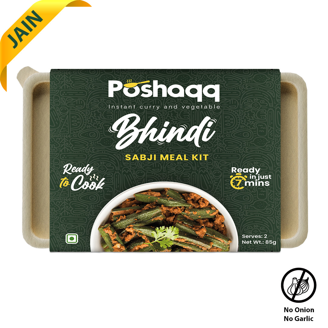 Poshaqq JAIN| Masala Bhindi Ready Mix | 100% Natural Masla Spice & Okra | Sabji Mealkit | Instant ready to cook Veg Bhaji | Ready to Eat or Cook | 25 grams Bhindi(Okra) and 60 grams Masala (Pack of 1) | After Cooking 300GMS | 2 servings