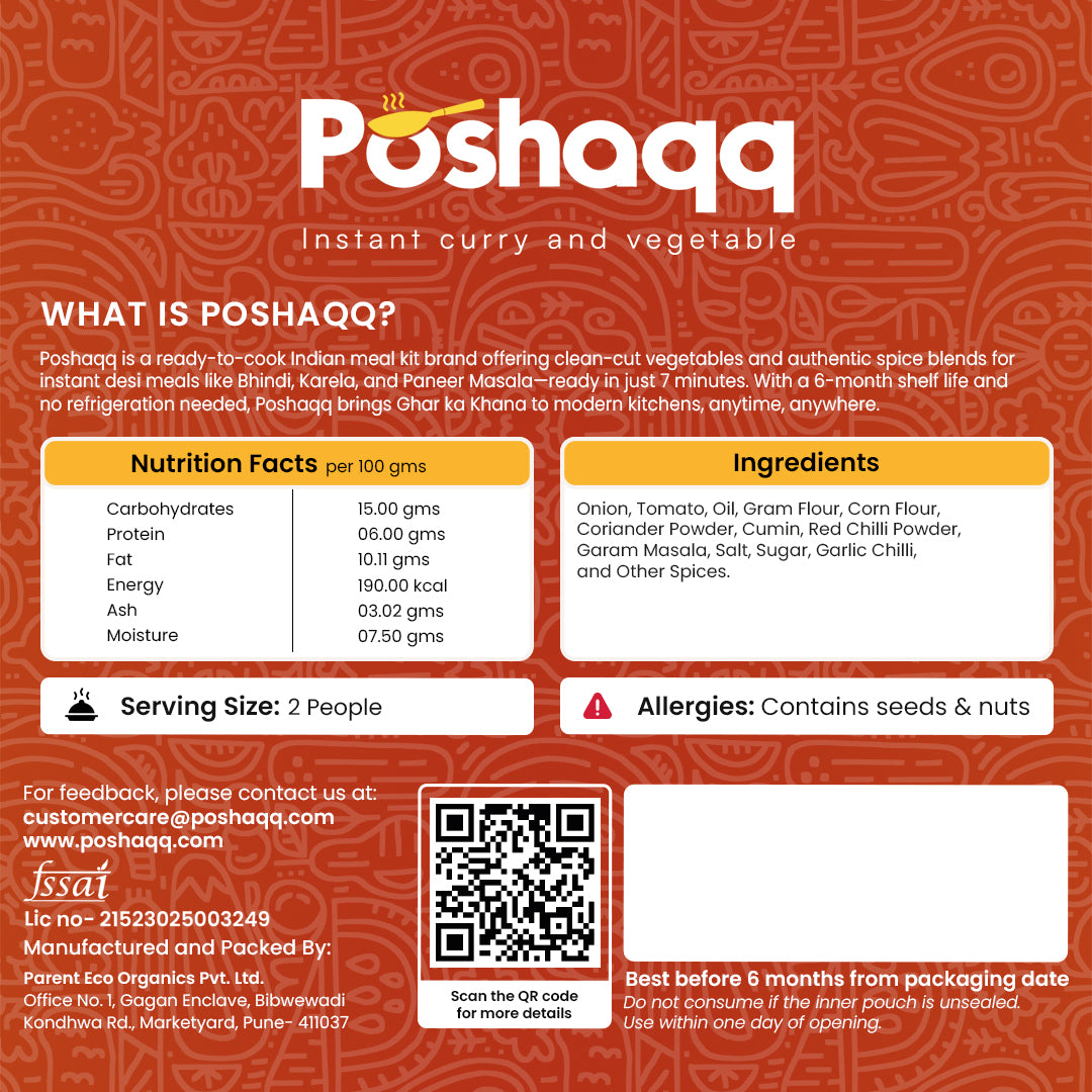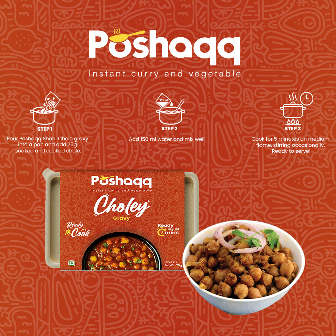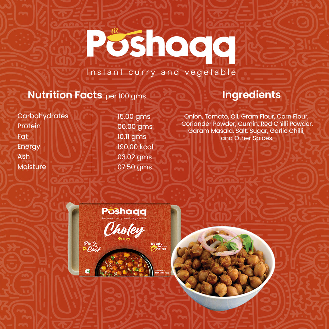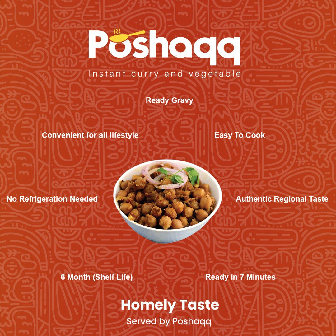 Craving dhaba-style chole without the long hours in the kitchen? Poshaqq's Ready-to-Cook Chole Meal Kit delivers rich, spicy, and soul-satisfying North Indian flavor in just 7 minutes. Made with pre-cooked, hygienic chickpeas, and our signature slow-roasted Punjabi-style masala, this kit lets you enjoy traditional goodness with zero prep. No preservatives, no artificial flavorsājust real Indian food with a 6-month shelf life. Ideal for busy professionals, students, and families looking for a quick yet wholesome Indian meal.Bullet Points: