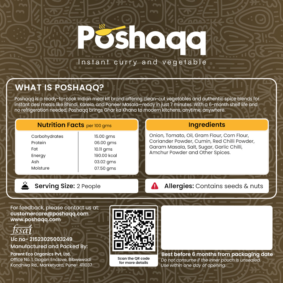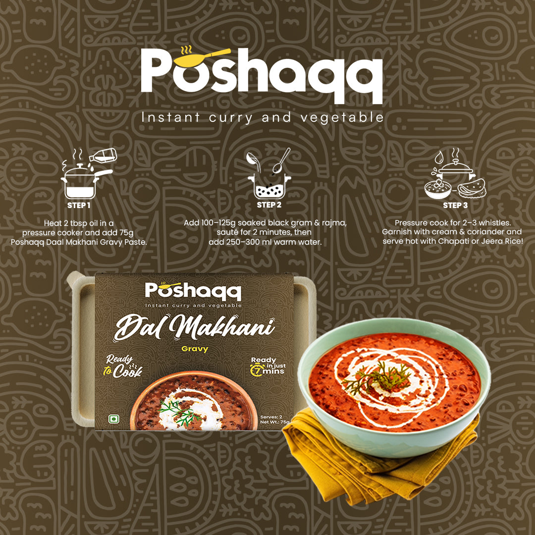 There’s nothing more comforting than a bowl of rich, creamy Dal Makhni—unless you can make it in minutes! With Poshaqq’s Ready-to-Cook Dal Makhni Meal Kit, you can now skip the overnight soaking and hours of cooking. This pack includes pre-cooked black urad dal and a chef-crafted buttery masala, giving you the true taste of North India in 7–10 minutes. Whether it’s a lazy weekend, last-minute guest, or a busy weekday night, this hygienic, long shelf-life kit makes sure you’re always just a few steps away from comfort food heaven.