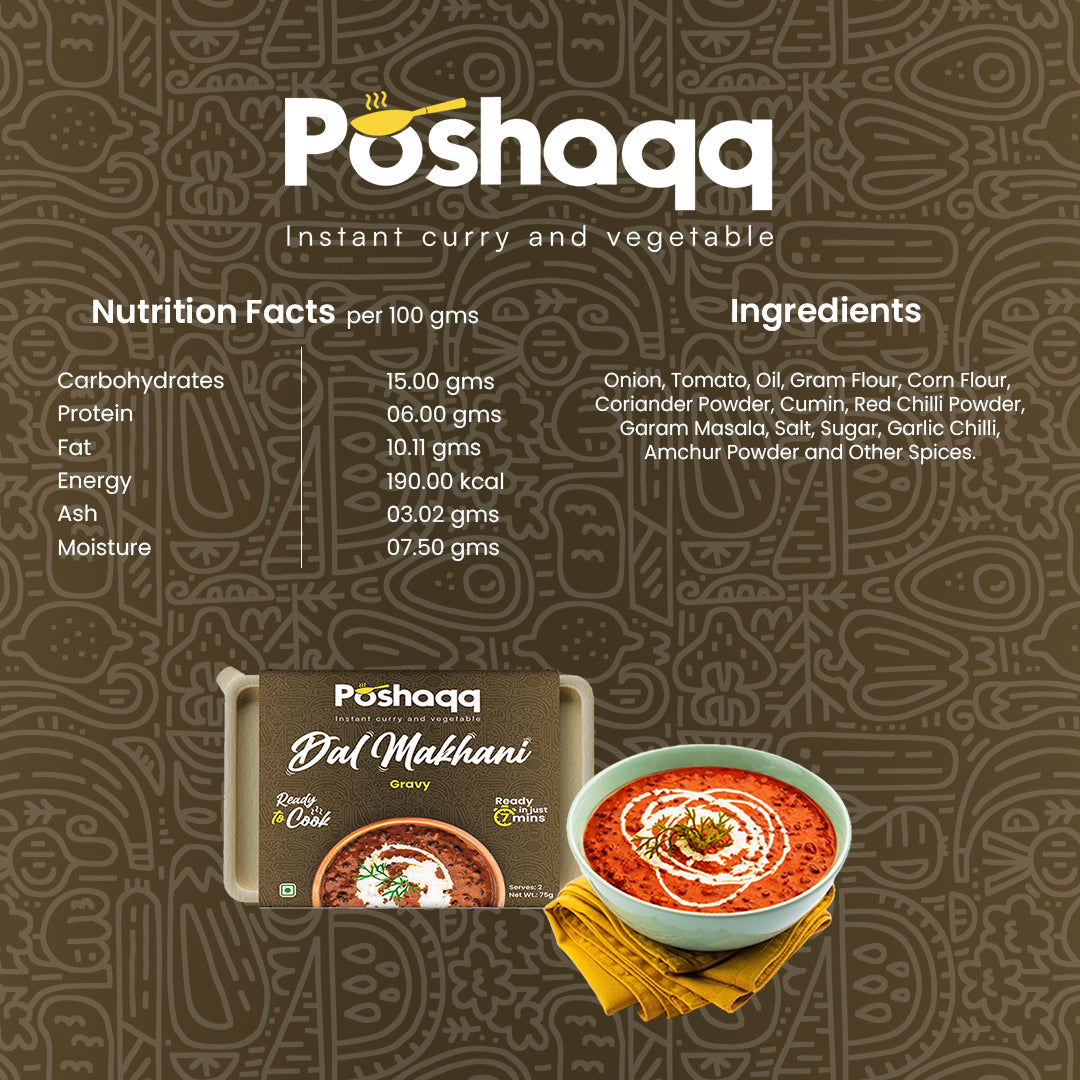 Poshaqq | Dhaba Style Creamy Dal Makhani Ready to Cook | Ready in 7 mins | Traditional Dal Makhani | No Preservatives or No Artificial Colors | Serves 2 | 75 grams (Pack of 1)