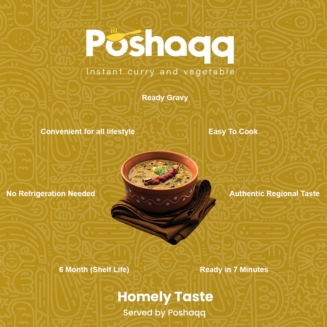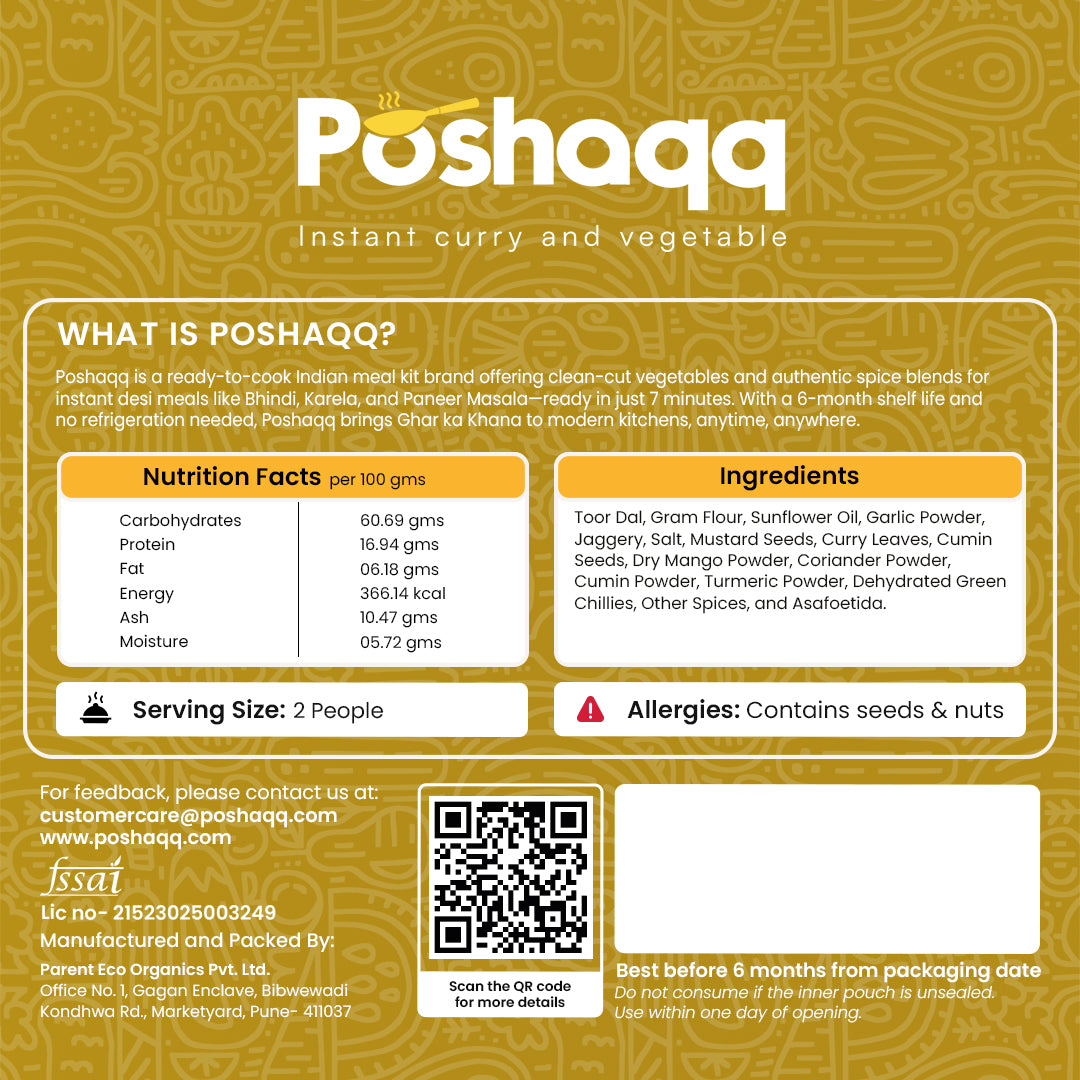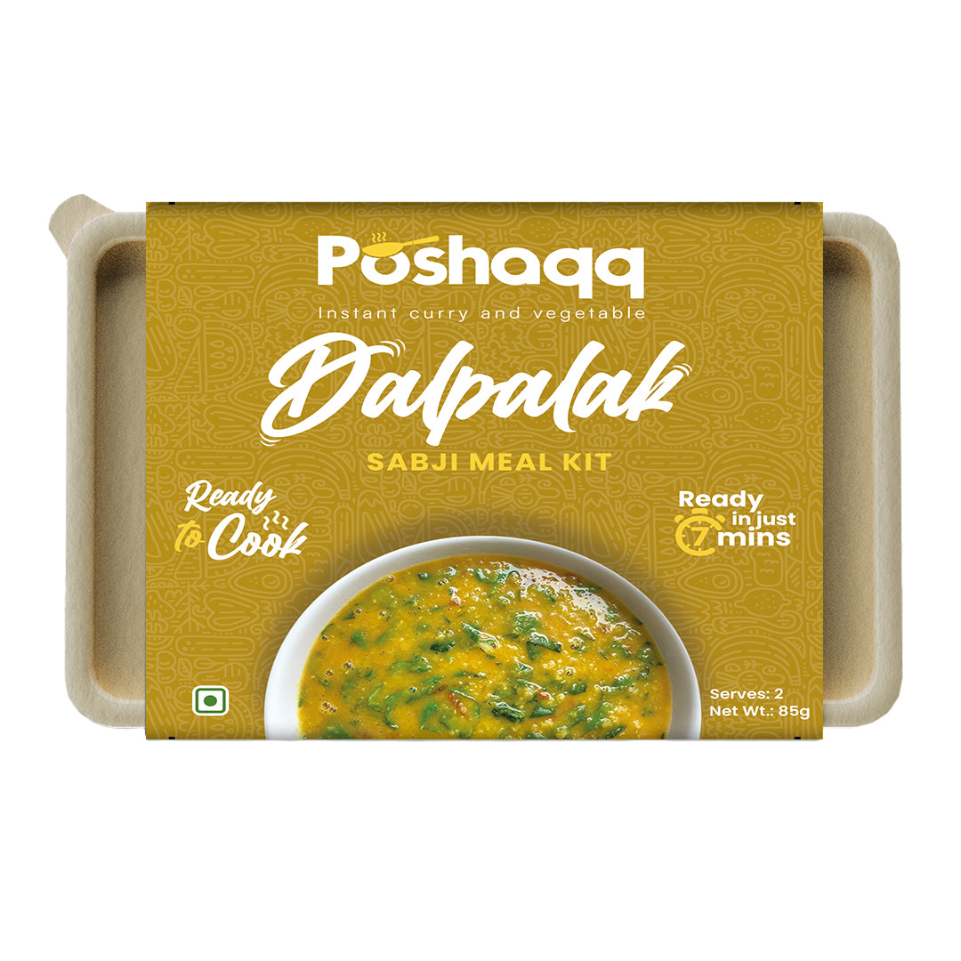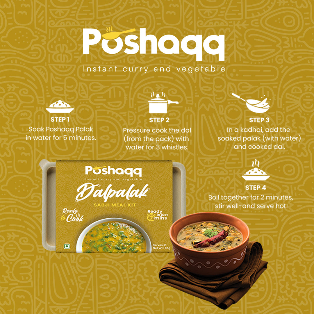 Poshaqq | Ready to Cook Dal Palak | Dal Palak Meal Kit | Ready in 7 mins | No Preservatives | Sabji Mealkit | Perfect for Lunch, Dinner & Travel | 25 grams Palak and 60 grams Masala (Pack of 1) | After Cooking 300GMS | 2 servings