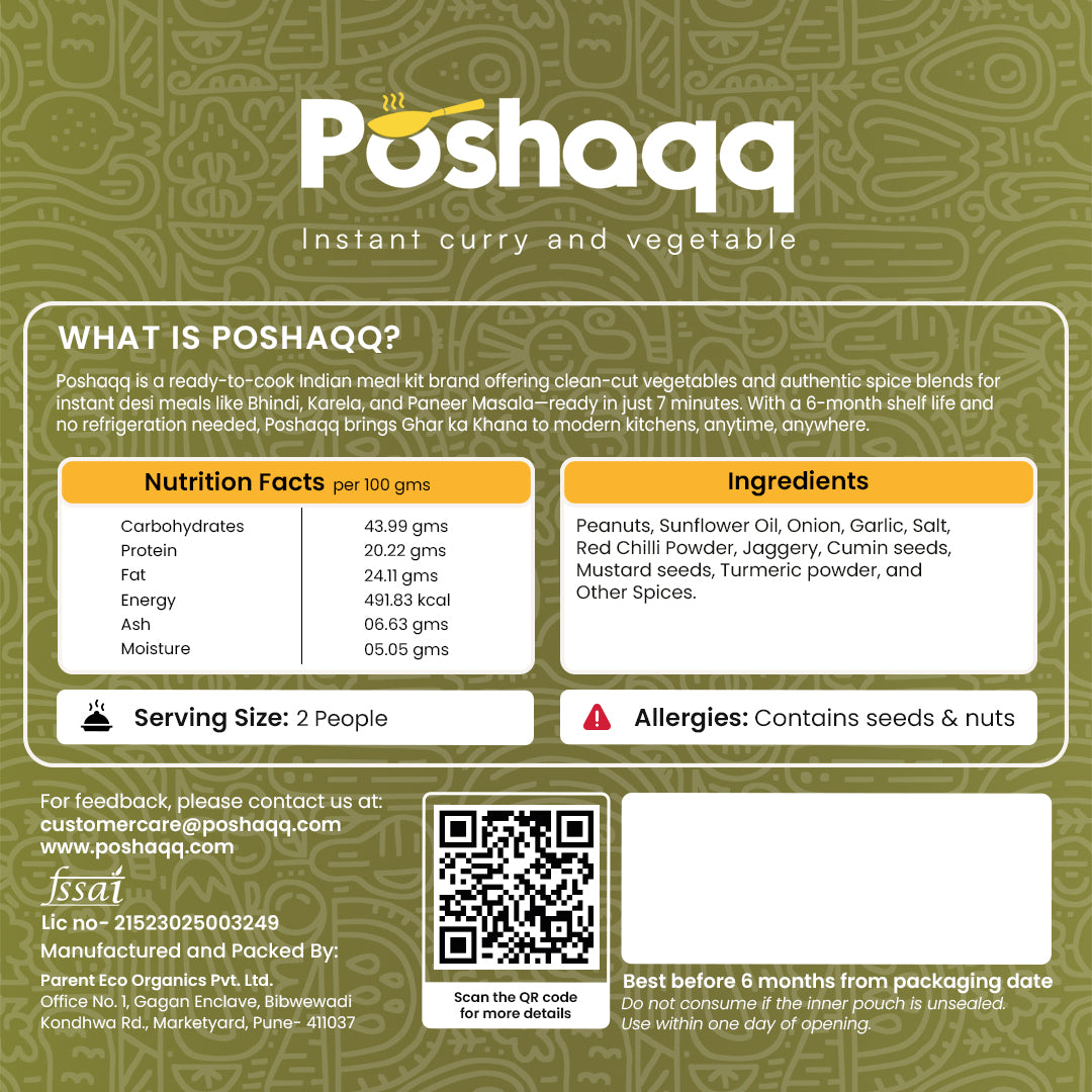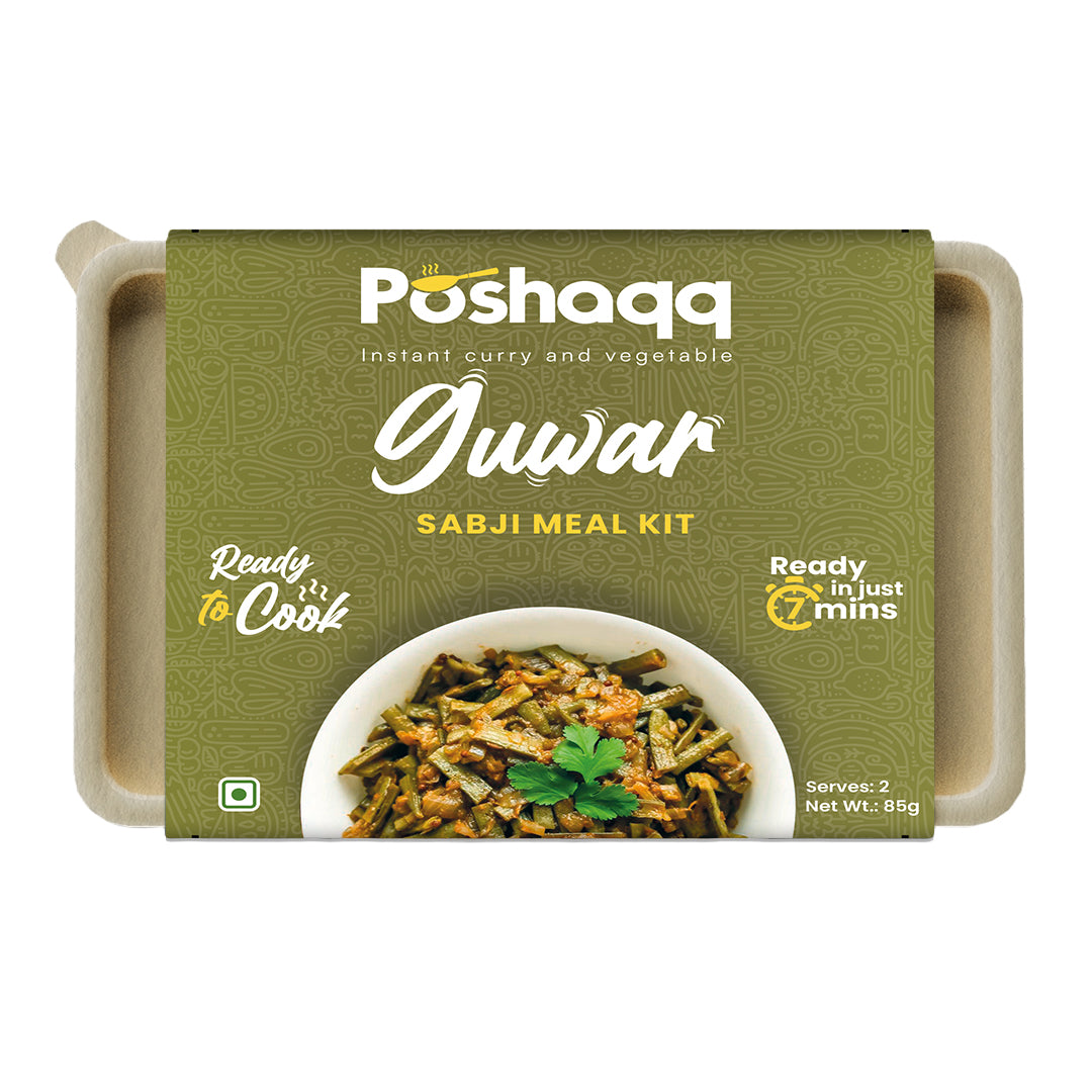Poshaqq’s Guwar Sabji Meal Kit transforms the humble cluster bean into a lip-smacking meal, minus the prep time. Featuring pre-cut guwar and a traditional spice mix, this kit delivers authentic Indian flavor in under 10 minutes. A wholesome, high-fiber sabji made for modern routines.