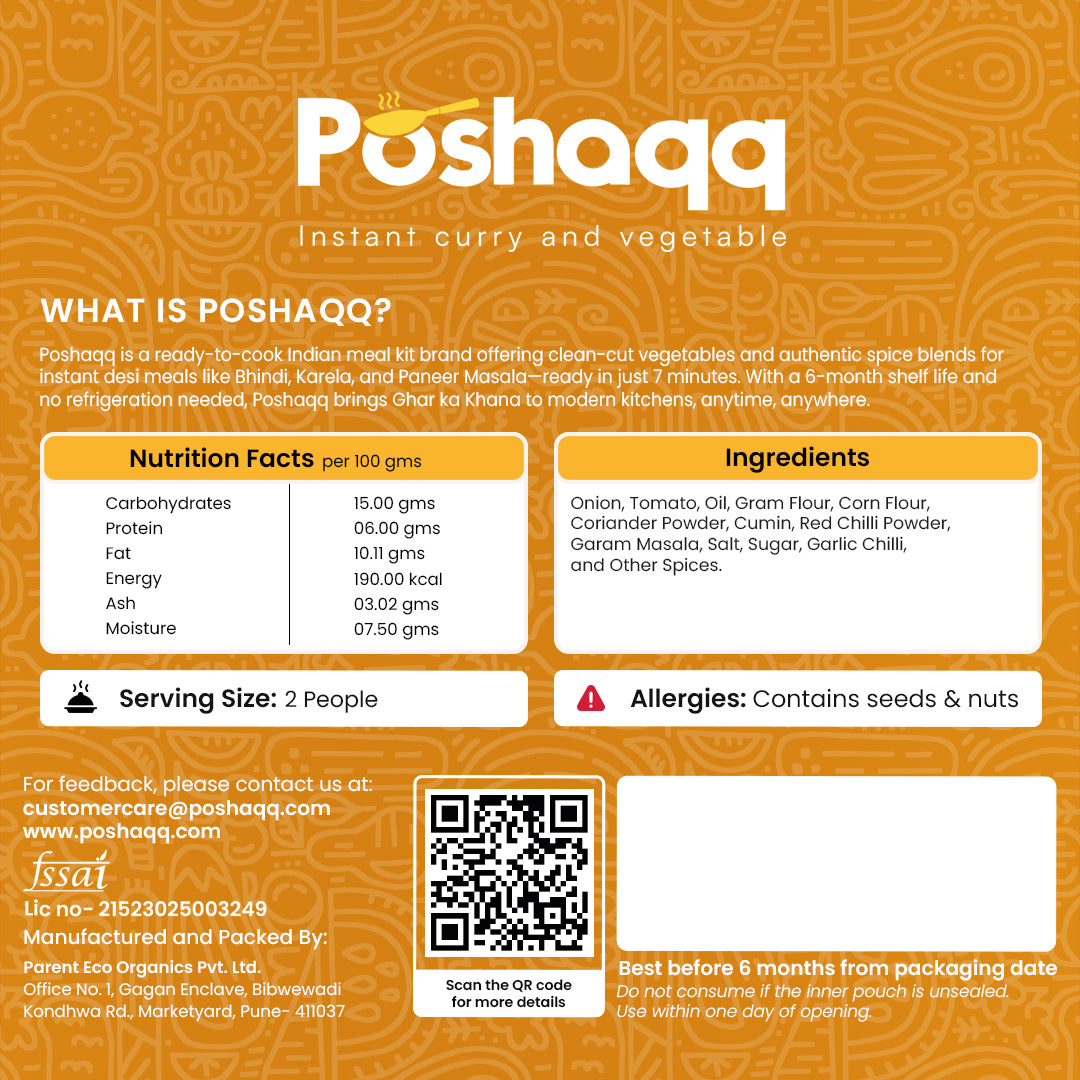 Give your taste buds a royal treat with Poshaqq’s Kaju Curry Meal Kit, a luxurious, ready-to-cook gravy that brings the creamy, nutty richness of cashews to your plate—without long hours in the kitchen. Ideal for dinner parties, celebrations, or everyday indulgence, this kit contains pre-cooked ingredients and chef-style gravy that cooks in 7 minutes flat. No need to grind kaju or struggle with spice balance—just open, cook, and serve. A premium, hygienic Indian meal kit with a 6-month shelf life and zero preservatives.