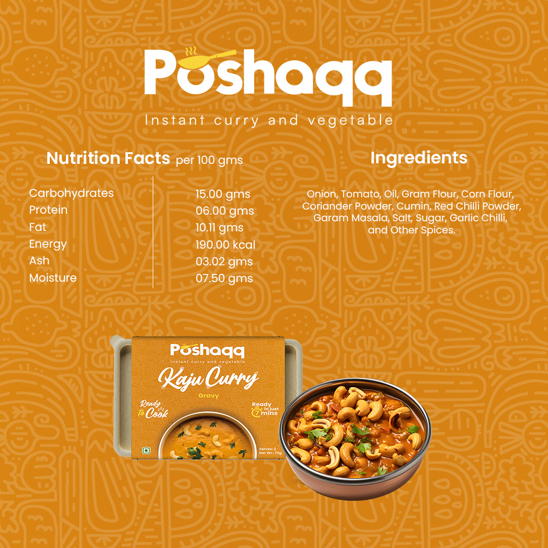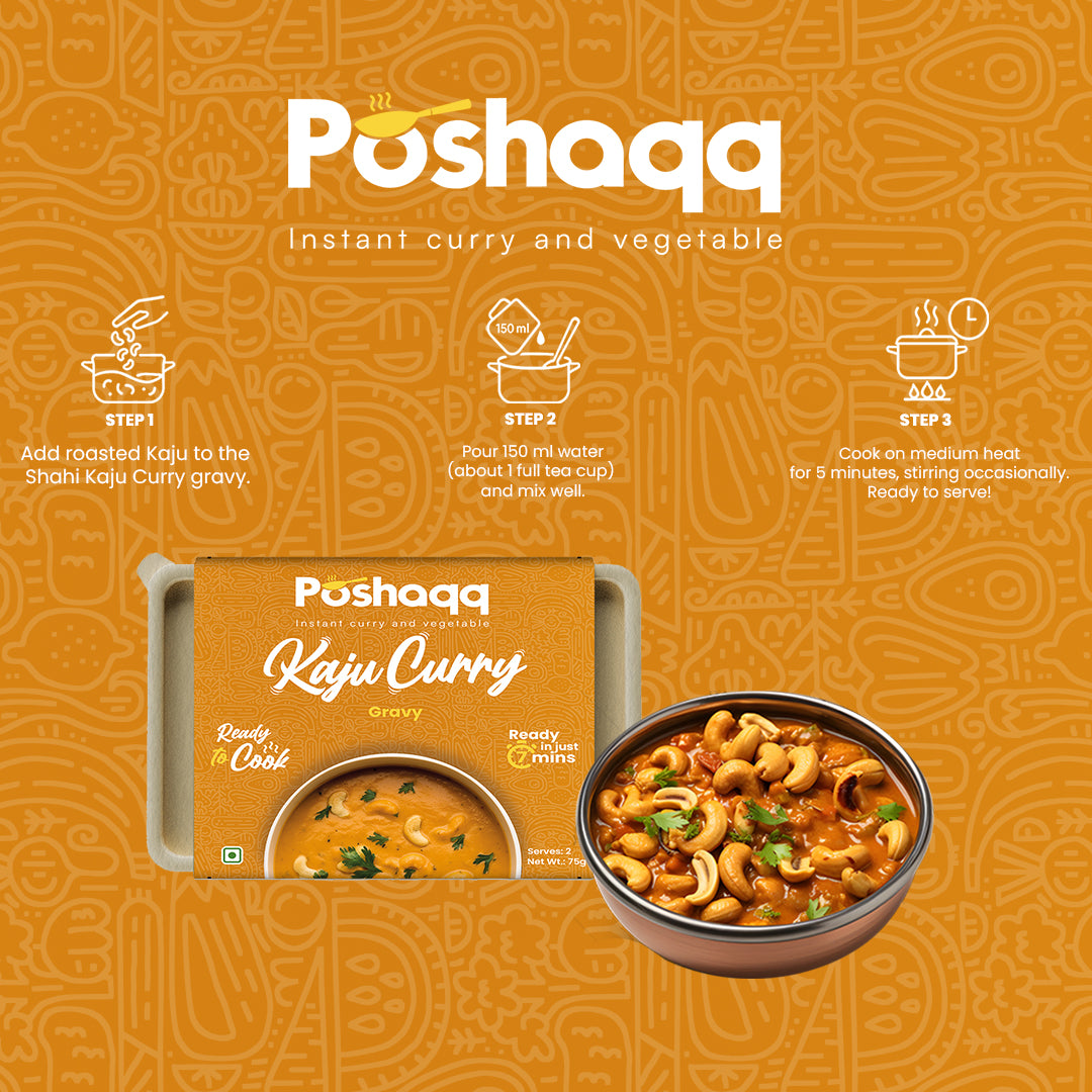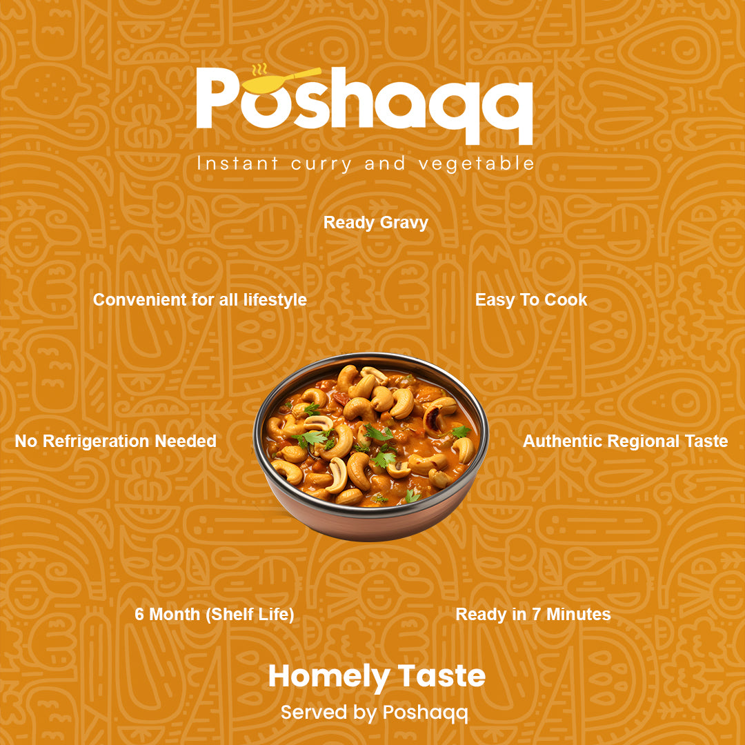 Poshaqq | Kaju Curry | Ready to Eat & Cook Meal Kit | After Cooking 350GM to Serve | Vegetarian Meal | Easy to Make Food | Just Add Milk and Cook | 2 Servings | 75 grams (Pack of 1)