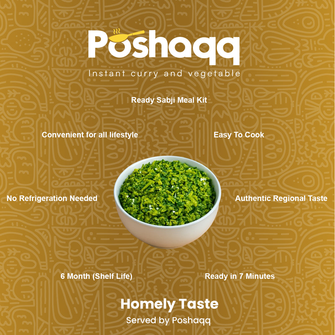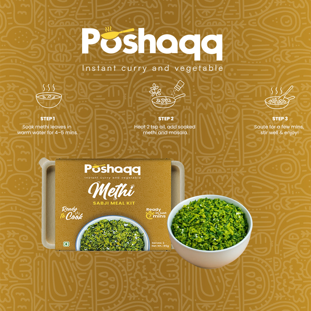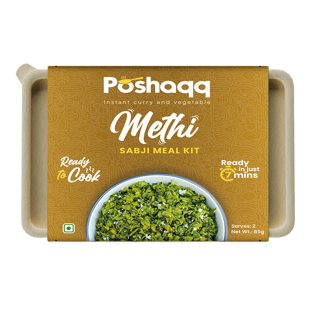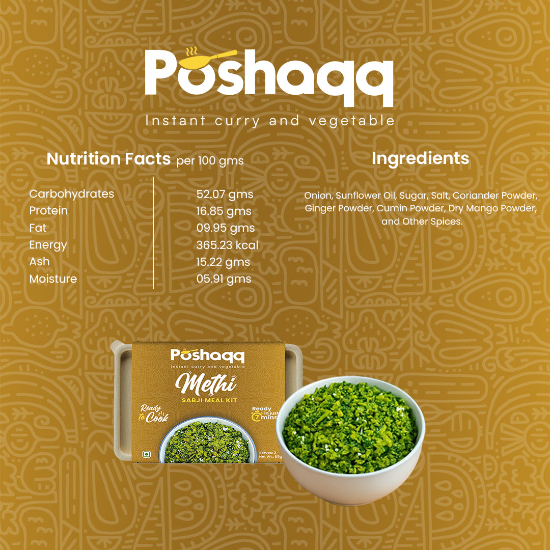Poshaqq | Ready to Cook Methi Sabji Meal Kit | 2 Servings | Cooks in 7 Mins | No Preservatives | 25g Methi + 60g Masala | Net Wt. 85g (Pack of 1)