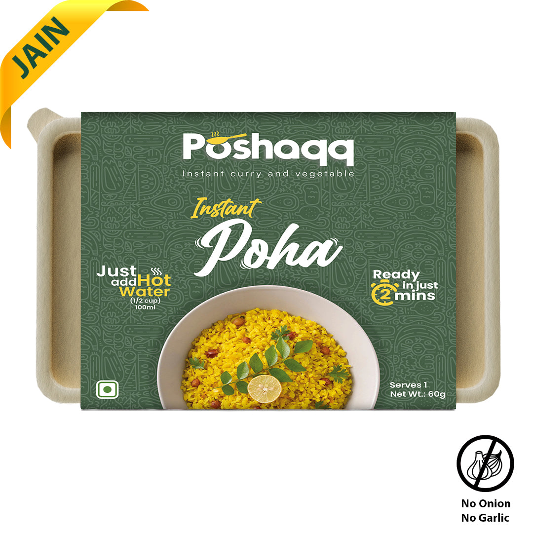Poshaqq JAIN| Ready to Eat Poha – Instant Breakfast Meal with Flattened Rice, Veggies & Spices | Healthy, Tasty & High-Fiber Snack | No Preservatives | Travel-Friendly & Quick Cooking Indian Food (75 Gram (Pack of 1))