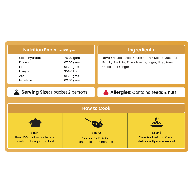 Enjoy the classic South Indian comfort of Jain Upma, now made ultra-convenient. This kit includes roasted semolina, tempered spices, and vegetables—without onion or garlic.